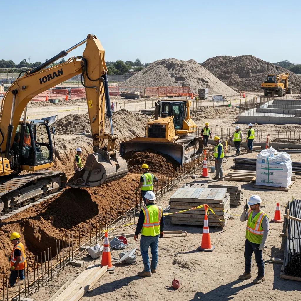 The core steps are foundation excavation, soil compaction, and ground leveling. Together they create a stable base that supports concrete loads and reduces risks such as settling, cracking, and increased maintenance.
